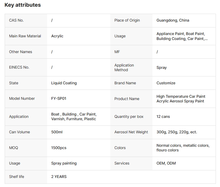 به کارخانه ما خوش آمدید ، ما تأمین کننده پیشرو رنگ اسپری رنگی مقاوم در برابر دمای بالا هستیم. فرمول ویژه ما می تواند در حالی که رنگهای پر جنب و جوش و ماندگار را ارائه می دهد ، در برابر دمای شدید مقاومت کند.